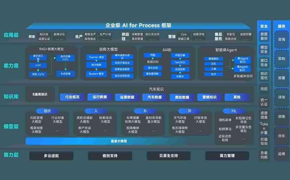 端到端的一站式AI工作空间深度融合了从企业战略规划到日常经营的全流程业务板块,,,,定向解决车企内部领域多、、、部门多、、链条长、、、场景碎片化等难题,,支持车企快速构建以AI为核心的生产力写作体系,,,,实现任务执行与AI能力的无缝集成与交互
